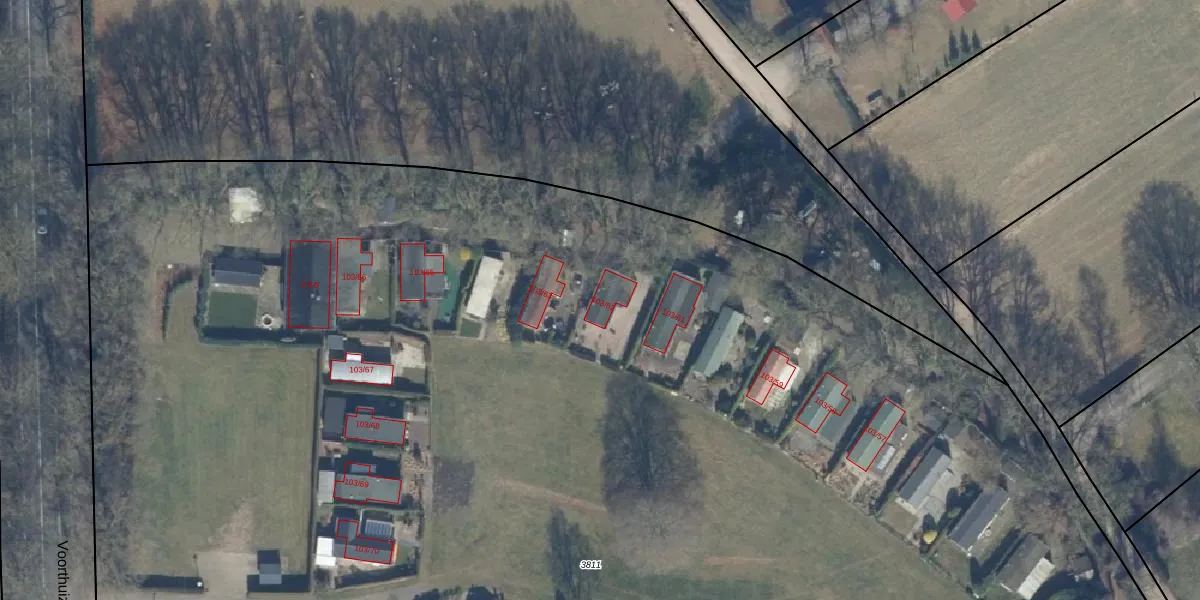 Voorthuizerstraat 103-62 is gelegen op kadastraal perceel PTN01D3811. Deze kadastrale aanduiding is uniek en wordt gebruikt door het Kadaster om eigendomsrechten en andere zakelijke rechten vast te leggen. Het perceel maakt onderdeel uit van de kadastrale gemeente Putten.