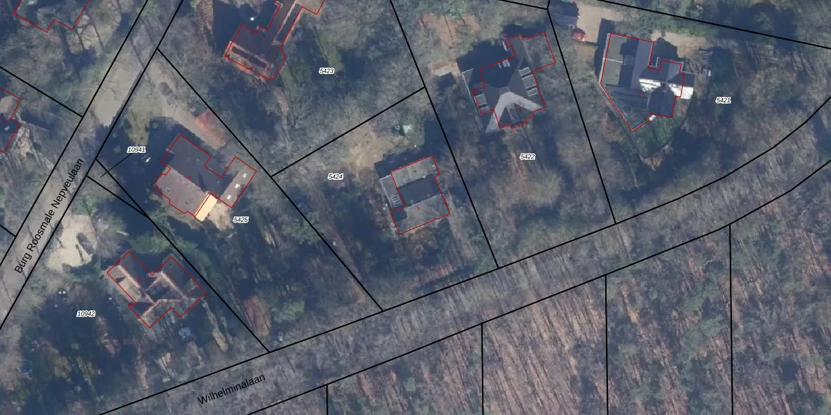 Het perceel waarop Wilhelminalaan 1 staat heeft een oppervlakte van 1570 m². Dit is een zeer groot perceel. De perceeloppervlakte wordt geregistreerd door het Kadaster. Gedetailleerde informatie over de maten van dit perceel kunt u vinden in het rapport Kadastrale kaart met maatvoering van Wilhelminalaan 1.