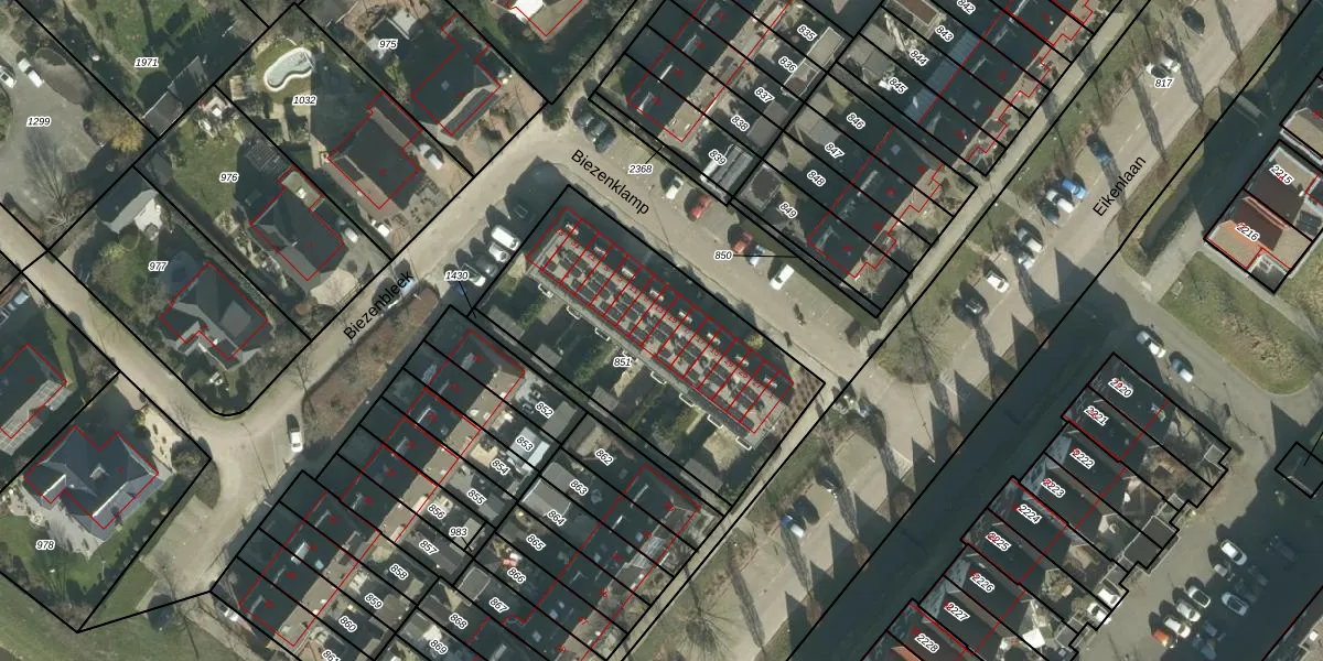 Het perceel waarop Biezenklamp 19 staat heeft een oppervlakte van 1150 m². Dit is een zeer groot perceel. De perceeloppervlakte wordt geregistreerd door het Kadaster. Gedetailleerde informatie over de maten van dit perceel kunt u vinden in het rapport Kadastrale kaart met maatvoering van Biezenklamp 19.