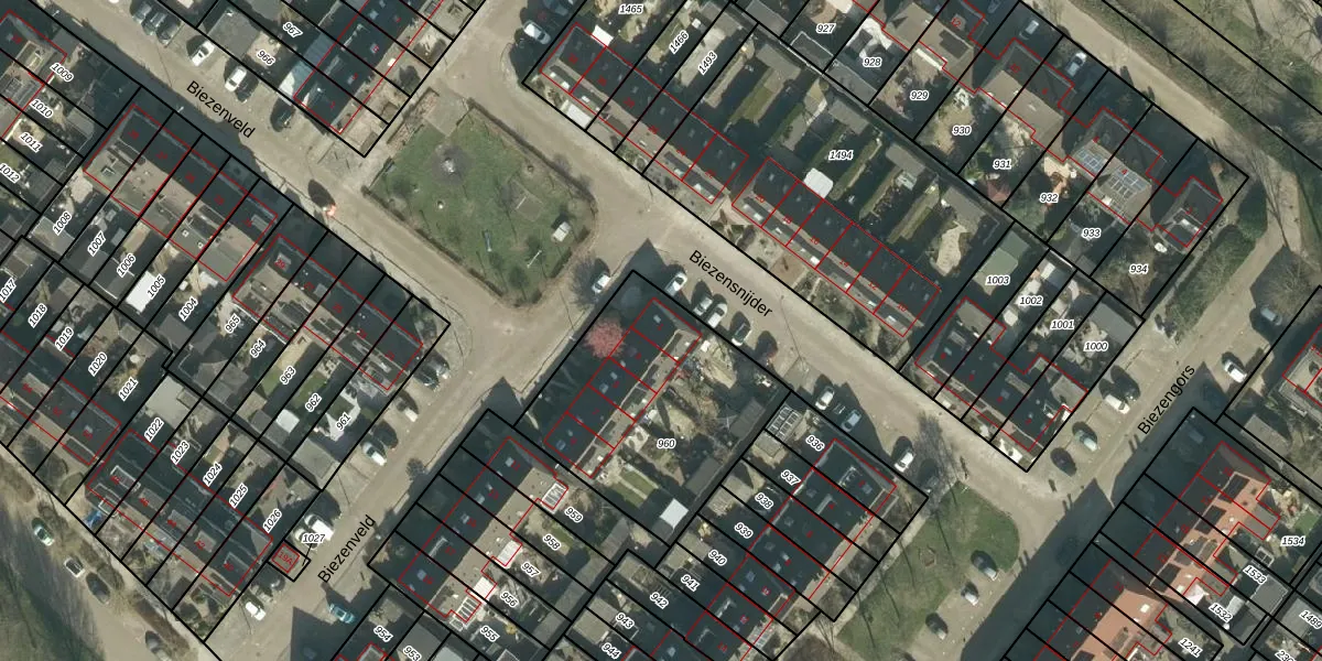 Het perceel waarop Biezenveld 1 staat heeft een oppervlakte van 900 m². Dit is een groot perceel. De perceeloppervlakte wordt geregistreerd door het Kadaster. Gedetailleerde informatie over de maten van dit perceel kunt u vinden in het rapport Kadastrale kaart met maatvoering van Biezenveld 1.