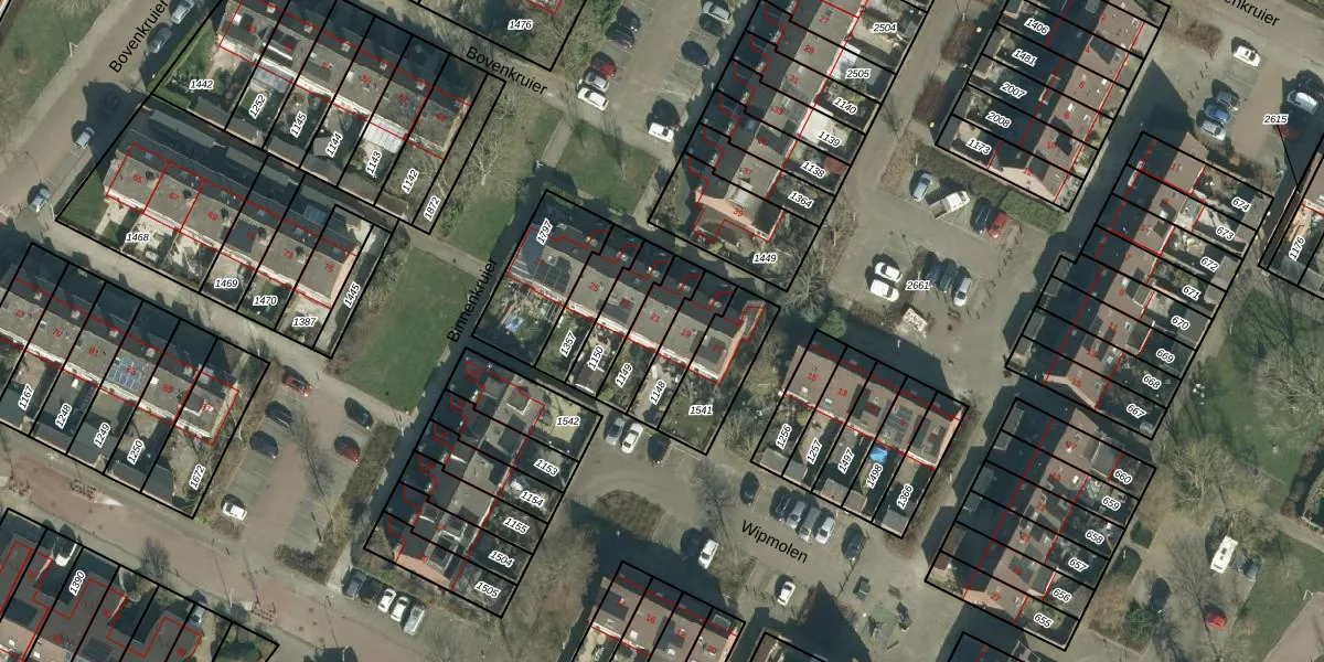 Het perceel waarop Binnenkruier 21 staat heeft een oppervlakte van 129 m². Dit is een middelgroot perceel. De perceeloppervlakte wordt geregistreerd door het Kadaster. Gedetailleerde informatie over de maten van dit perceel kunt u vinden in het rapport Kadastrale kaart met maatvoering van Binnenkruier 21.