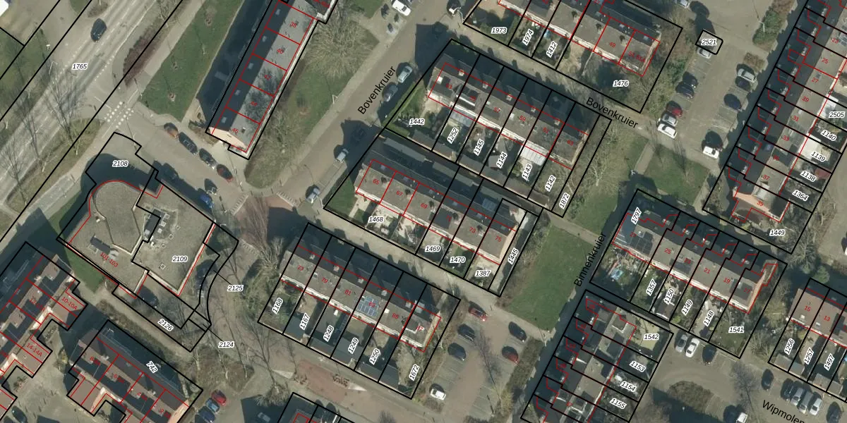 Het perceel waarop Bovenkruier 69 staat heeft een oppervlakte van 525 m². Dit is een groot perceel. De perceeloppervlakte wordt geregistreerd door het Kadaster. Gedetailleerde informatie over de maten van dit perceel kunt u vinden in het rapport Kadastrale kaart met maatvoering van Bovenkruier 69.
