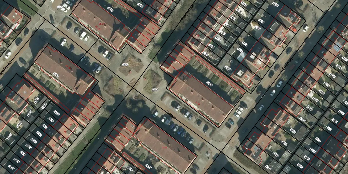 Het perceel waarop Dotter 19 staat heeft een oppervlakte van 1210 m². Dit is een zeer groot perceel. De perceeloppervlakte wordt geregistreerd door het Kadaster. Gedetailleerde informatie over de maten van dit perceel kunt u vinden in het rapport Kadastrale kaart met maatvoering van Dotter 19.