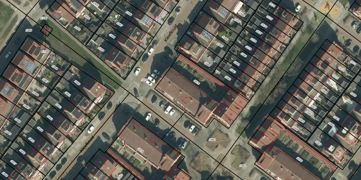 Het perceel waarop Dotter 33 staat heeft een oppervlakte van 1105 m². Dit is een zeer groot perceel. De perceeloppervlakte wordt geregistreerd door het Kadaster. Gedetailleerde informatie over de maten van dit perceel kunt u vinden in het rapport Kadastrale kaart met maatvoering van Dotter 33.