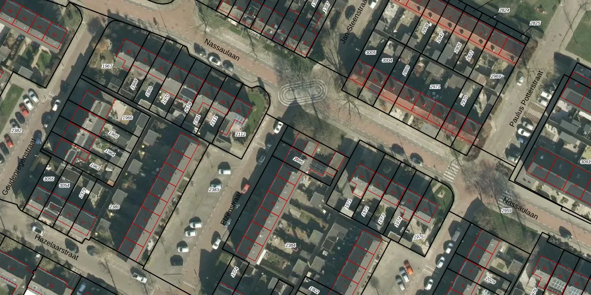Het perceel waarop Elzenstraat 2 staat heeft een oppervlakte van 2009 m². Dit is een zeer groot perceel. De perceeloppervlakte wordt geregistreerd door het Kadaster. Gedetailleerde informatie over de maten van dit perceel kunt u vinden in het rapport Kadastrale kaart met maatvoering van Elzenstraat 2.