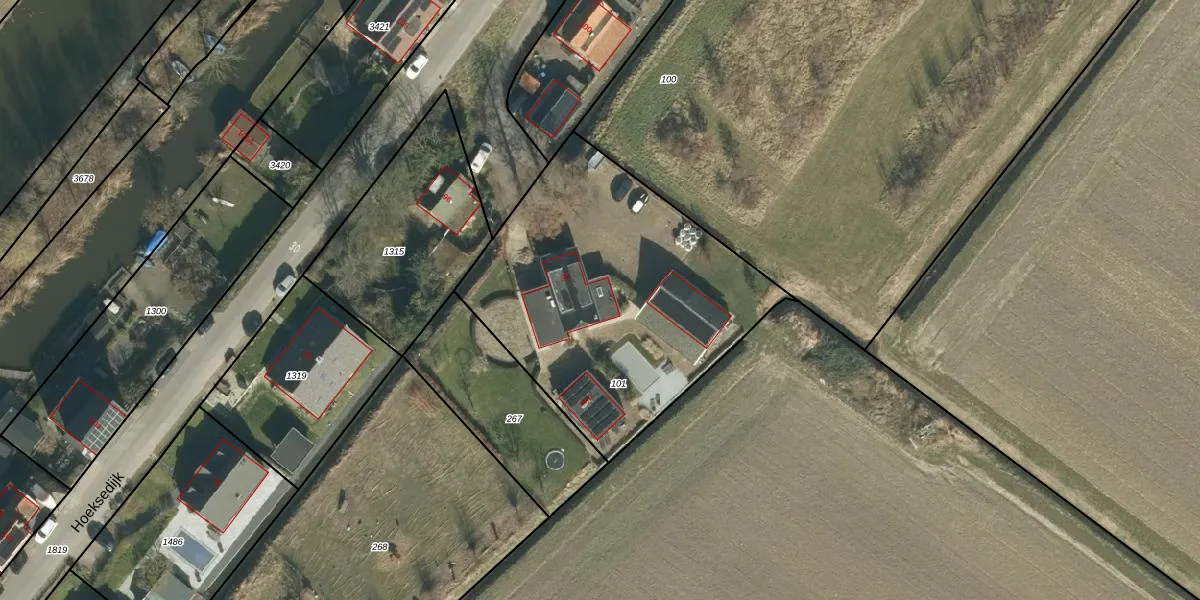 Het perceel waarop Hoeksedijk 98 staat heeft een oppervlakte van 1545 m². Dit is een zeer groot perceel. De perceeloppervlakte wordt geregistreerd door het Kadaster. Gedetailleerde informatie over de maten van dit perceel kunt u vinden in het rapport Kadastrale kaart met maatvoering van Hoeksedijk 98.