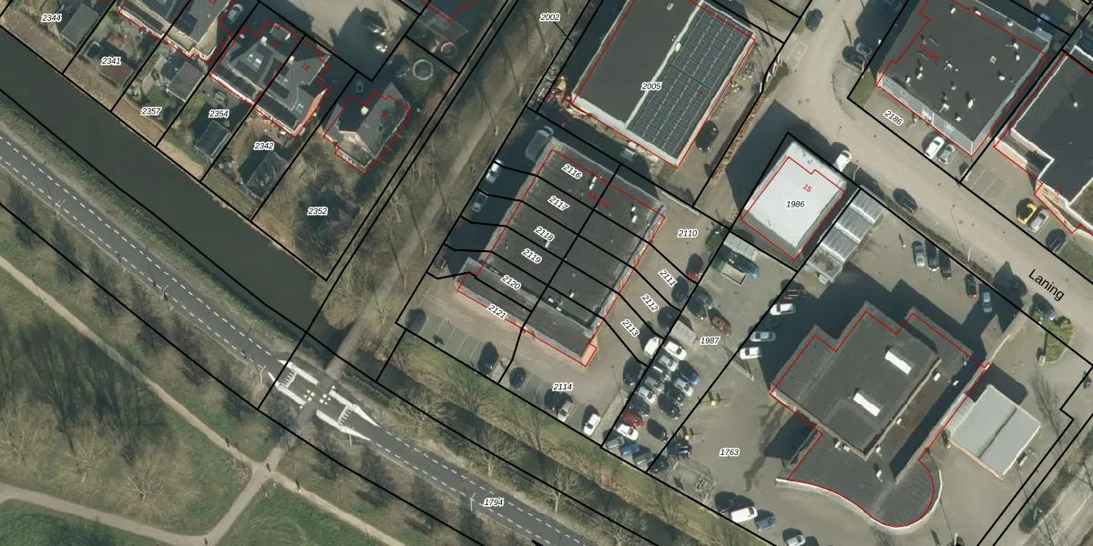 Het perceel waarop Laning 13 staat heeft een oppervlakte van 113 m². Dit is een middelgroot perceel. De perceeloppervlakte wordt geregistreerd door het Kadaster. Gedetailleerde informatie over de maten van dit perceel kunt u vinden in het rapport Kadastrale kaart met maatvoering van Laning 13.