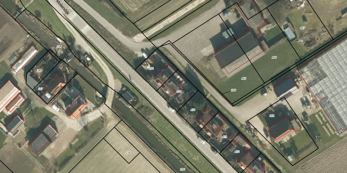 Het perceel waarop Molendijk 18 staat heeft een oppervlakte van 295 m². Dit is een middelgroot perceel. De perceeloppervlakte wordt geregistreerd door het Kadaster. Gedetailleerde informatie over de maten van dit perceel kunt u vinden in het rapport Kadastrale kaart met maatvoering van Molendijk 18.