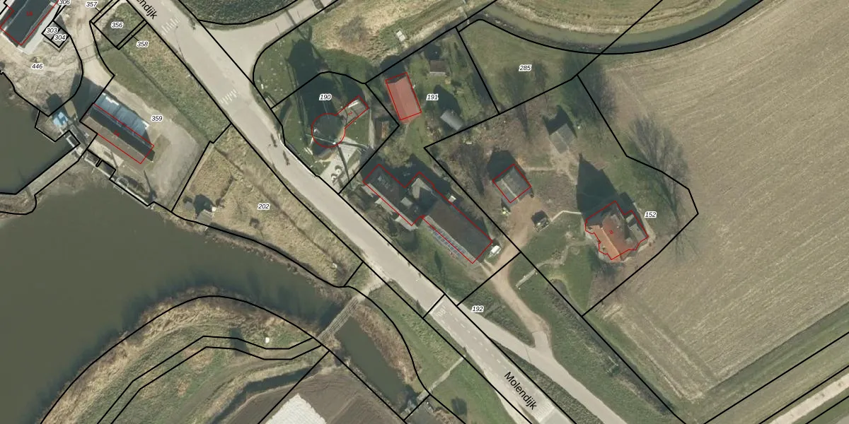 Het perceel waarop Molendijk 4 staat heeft een oppervlakte van 1325 m². Dit is een zeer groot perceel. De perceeloppervlakte wordt geregistreerd door het Kadaster. Gedetailleerde informatie over de maten van dit perceel kunt u vinden in het rapport Kadastrale kaart met maatvoering van Molendijk 4.