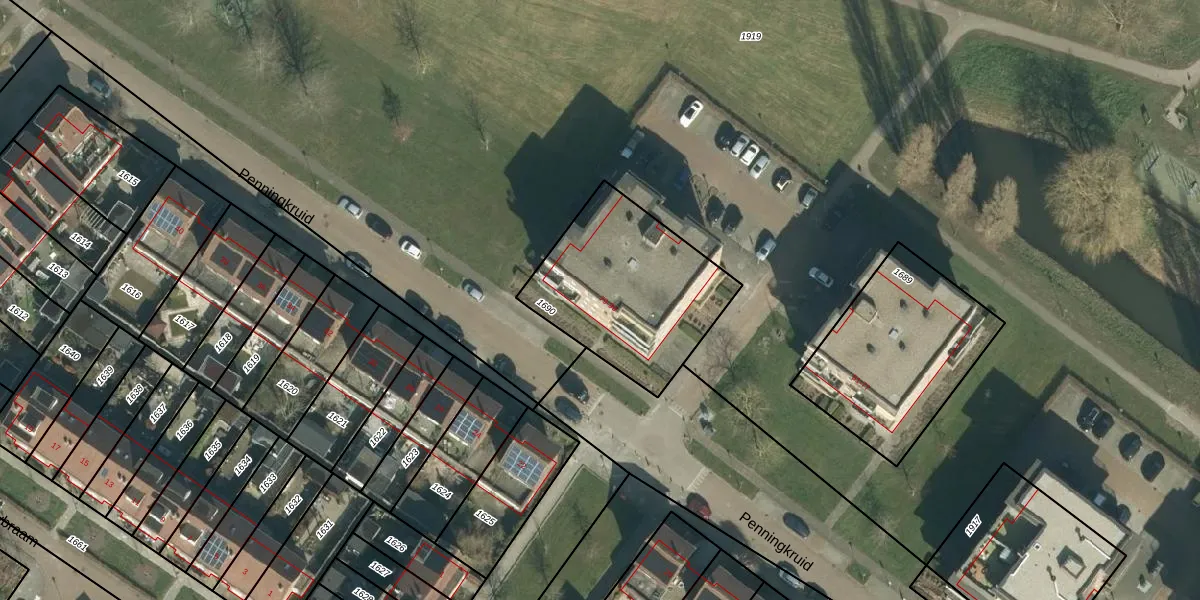 Het perceel waarop Penningkruid 83 staat heeft een oppervlakte van 694 m². Dit is een groot perceel. De perceeloppervlakte wordt geregistreerd door het Kadaster. Gedetailleerde informatie over de maten van dit perceel kunt u vinden in het rapport Kadastrale kaart met maatvoering van Penningkruid 83.