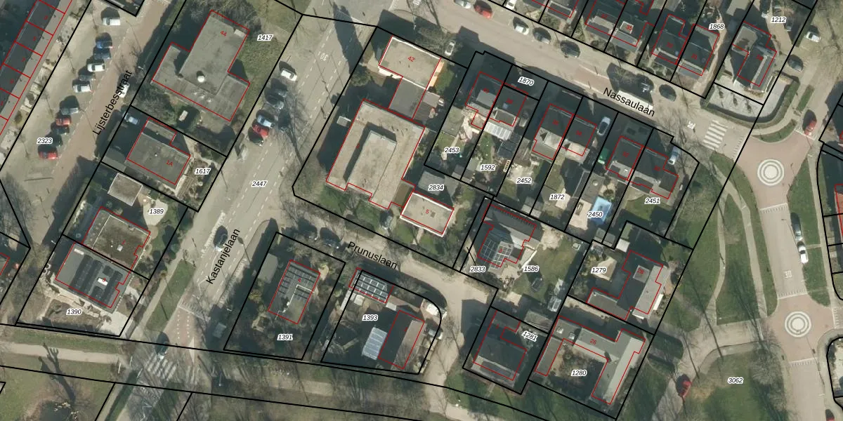 Het perceel waarop Prunuslaan 5 staat heeft een oppervlakte van 1444 m². Dit is een zeer groot perceel. De perceeloppervlakte wordt geregistreerd door het Kadaster. Gedetailleerde informatie over de maten van dit perceel kunt u vinden in het rapport Kadastrale kaart met maatvoering van Prunuslaan 5.