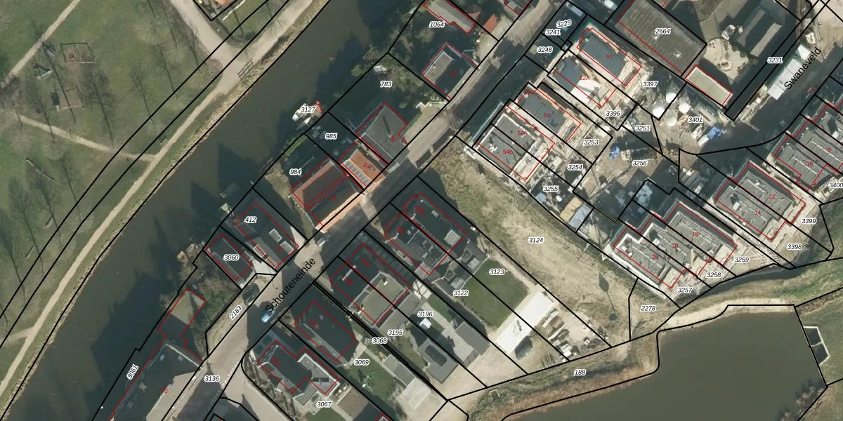 Schouteneinde 56-B is gelegen op kadastraal perceel PTH01C3123. Deze kadastrale aanduiding is uniek en wordt gebruikt door het Kadaster om eigendomsrechten en andere zakelijke rechten vast te leggen. Het perceel maakt onderdeel uit van de kadastrale gemeente Puttershoek.