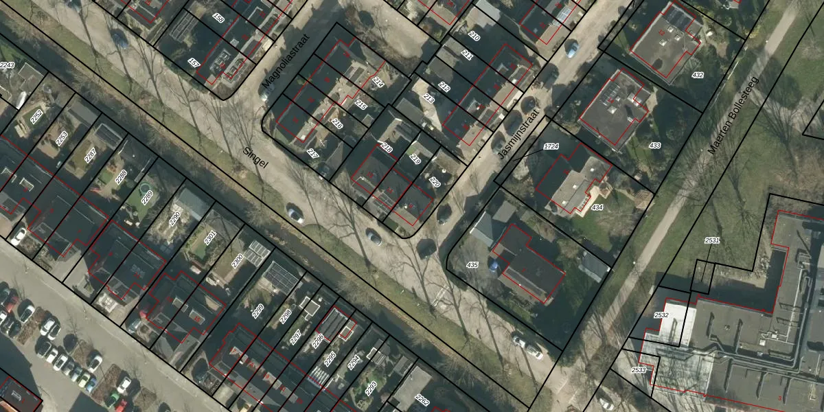 Het perceel waarop Singel 9 staat heeft een oppervlakte van 196 m². Dit is een middelgroot perceel. De perceeloppervlakte wordt geregistreerd door het Kadaster. Gedetailleerde informatie over de maten van dit perceel kunt u vinden in het rapport Kadastrale kaart met maatvoering van Singel 9.