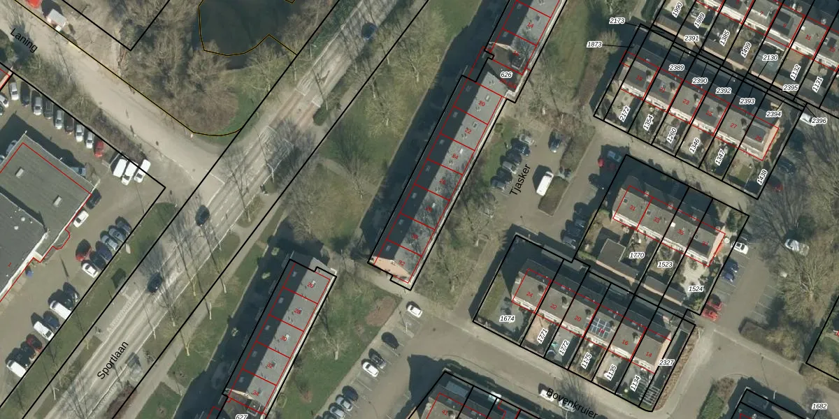 Het perceel waarop Tjasker 28 staat heeft een oppervlakte van 1376 m². Dit is een zeer groot perceel. De perceeloppervlakte wordt geregistreerd door het Kadaster. Gedetailleerde informatie over de maten van dit perceel kunt u vinden in het rapport Kadastrale kaart met maatvoering van Tjasker 28.