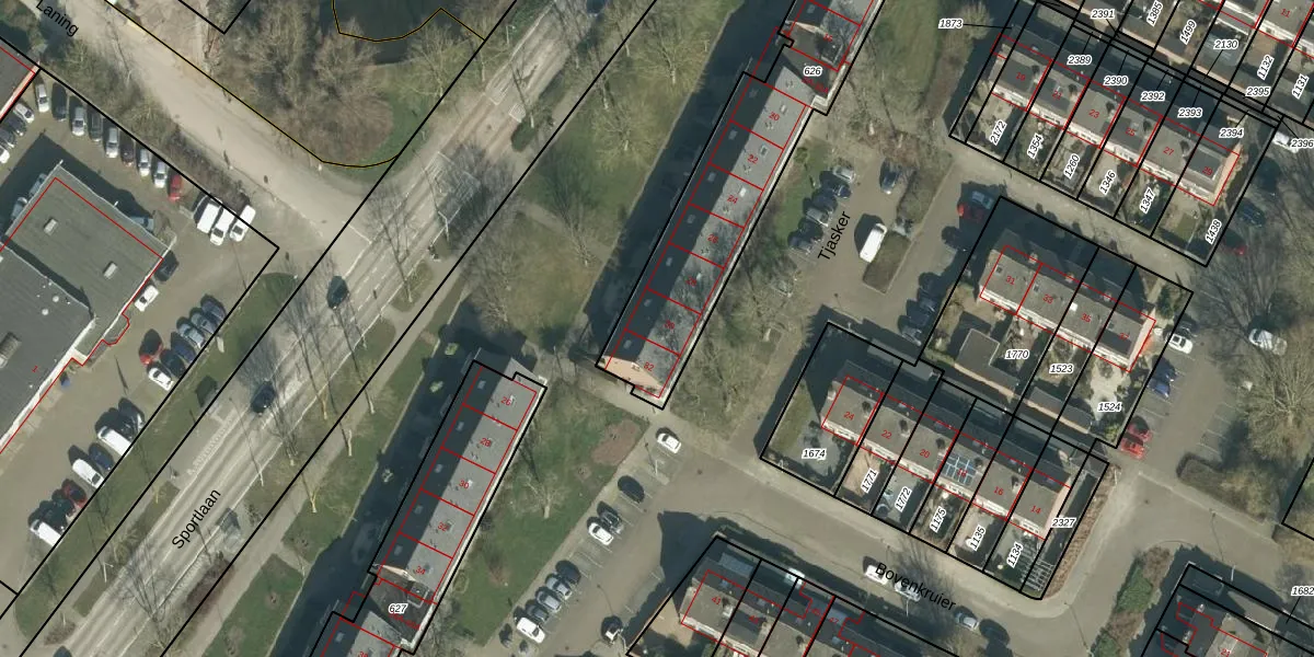 Het perceel waarop Tjasker 30 staat heeft een oppervlakte van 1376 m². Dit is een zeer groot perceel. De perceeloppervlakte wordt geregistreerd door het Kadaster. Gedetailleerde informatie over de maten van dit perceel kunt u vinden in het rapport Kadastrale kaart met maatvoering van Tjasker 30.
