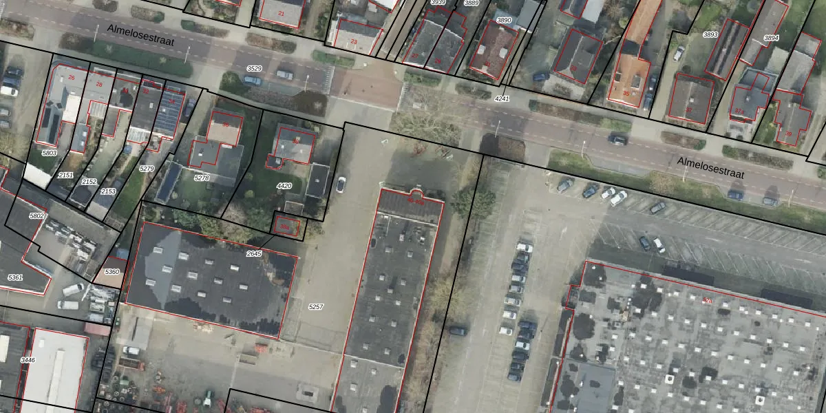 Het perceel waarop Almelosestraat 40-a staat heeft een oppervlakte van 4405 m². Dit is een zeer groot perceel. De perceeloppervlakte wordt geregistreerd door het Kadaster. Gedetailleerde informatie over de maten van dit perceel kunt u vinden in het rapport Kadastrale kaart met maatvoering van Almelosestraat 40-a.