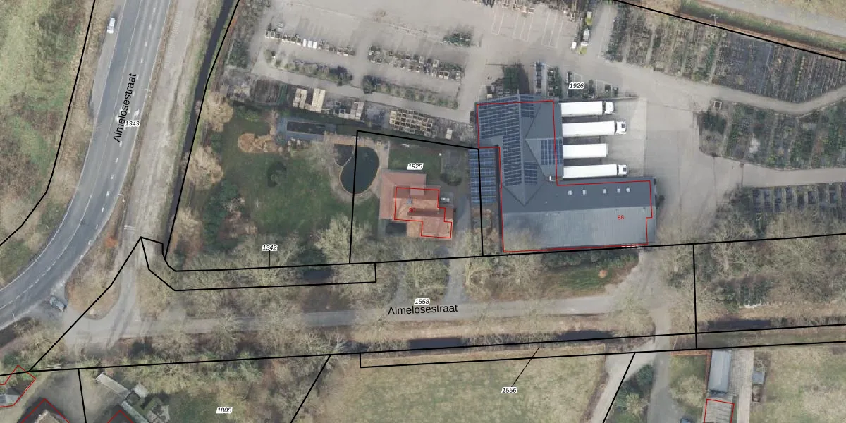 Het perceel waarop Almelosestraat 90 staat heeft een oppervlakte van 850 m². Dit is een groot perceel. De perceeloppervlakte wordt geregistreerd door het Kadaster. Gedetailleerde informatie over de maten van dit perceel kunt u vinden in het rapport Kadastrale kaart met maatvoering van Almelosestraat 90.