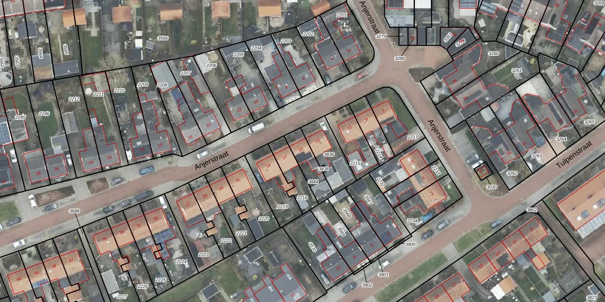 Gebruik de zoekbalk of klik op een perceel voor informatie over de adressen binnen dit perceel.