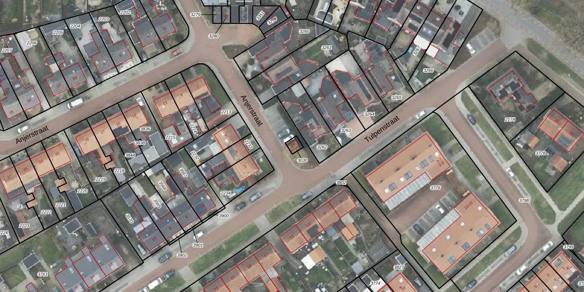 Gebruik de zoekbalk of klik op een perceel voor informatie over de adressen binnen dit perceel.