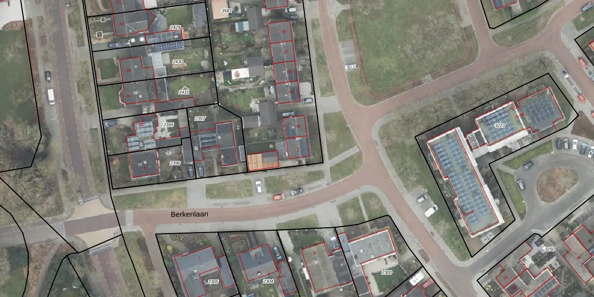 Het perceel waarop Berkenlaan 2 staat heeft een oppervlakte van 2558 m². Dit is een zeer groot perceel. De perceeloppervlakte wordt geregistreerd door het Kadaster. Gedetailleerde informatie over de maten van dit perceel kunt u vinden in het rapport Kadastrale kaart met maatvoering van Berkenlaan 2.