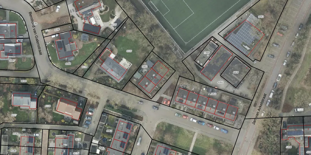 Het perceel waarop Bernhard van Galenstraat 16 staat heeft een oppervlakte van 473 m². Dit is een groot perceel. De perceeloppervlakte wordt geregistreerd door het Kadaster. Gedetailleerde informatie over de maten van dit perceel kunt u vinden in het rapport Kadastrale kaart met maatvoering van Bernhard van Galenstraat 16.