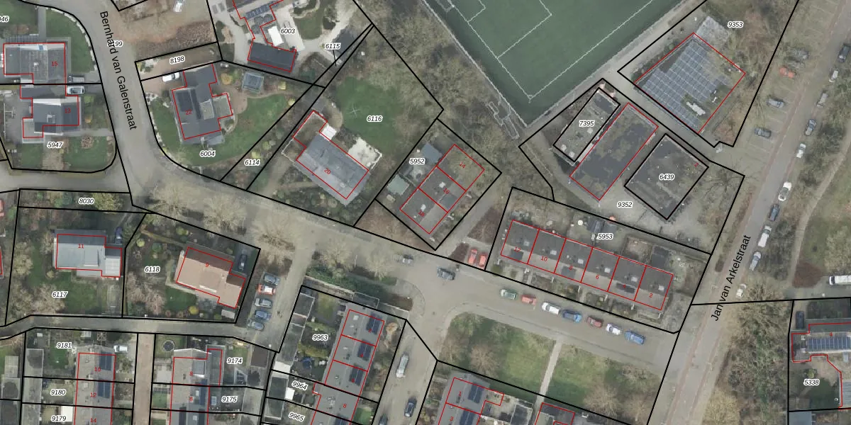 Het perceel waarop Bernhard van Galenstraat 18 staat heeft een oppervlakte van 473 m². Dit is een groot perceel. De perceeloppervlakte wordt geregistreerd door het Kadaster. Gedetailleerde informatie over de maten van dit perceel kunt u vinden in het rapport Kadastrale kaart met maatvoering van Bernhard van Galenstraat 18.