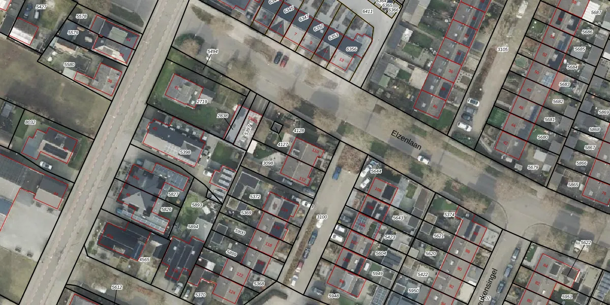 Gebruik de zoekbalk of klik op een perceel voor informatie over de adressen binnen dit perceel.