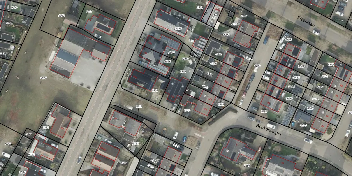 Het perceel waarop Beukensingel 126 staat heeft een oppervlakte van 393 m². Dit is een groot perceel. De perceeloppervlakte wordt geregistreerd door het Kadaster. Gedetailleerde informatie over de maten van dit perceel kunt u vinden in het rapport Kadastrale kaart met maatvoering van Beukensingel 126.
