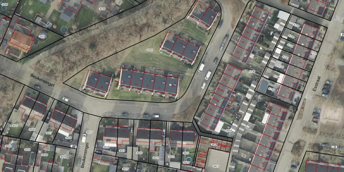 Het perceel waarop Beukensingel 29 staat heeft een oppervlakte van 2630 m². Dit is een zeer groot perceel. De perceeloppervlakte wordt geregistreerd door het Kadaster. Gedetailleerde informatie over de maten van dit perceel kunt u vinden in het rapport Kadastrale kaart met maatvoering van Beukensingel 29.