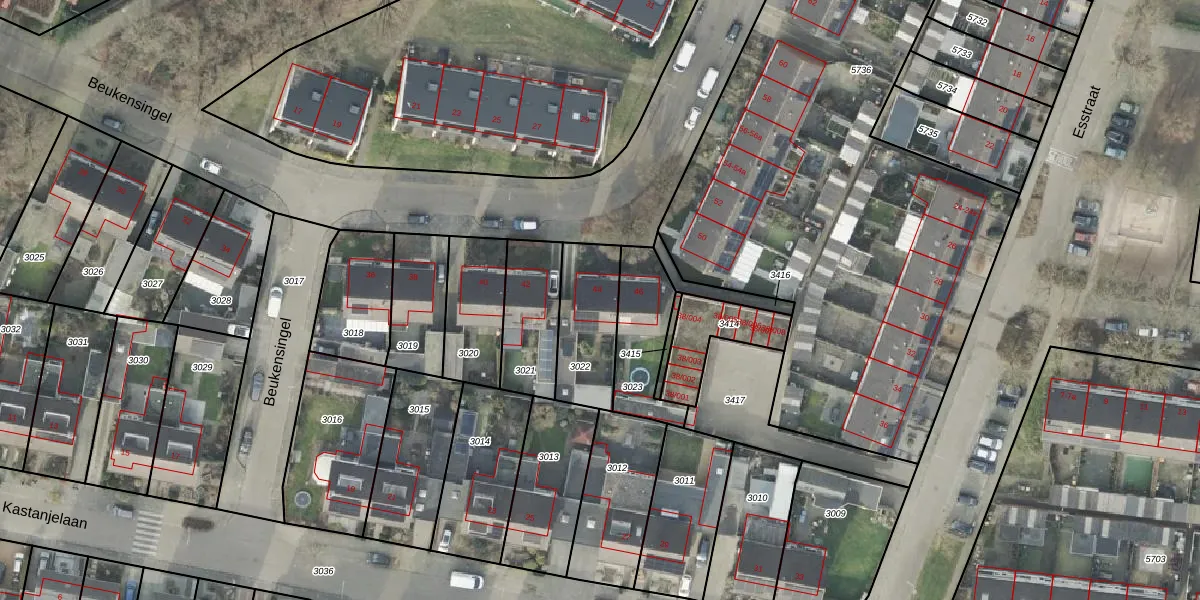 Beukensingel 44 is gelegen op kadastraal perceel RTE00F3022. Deze kadastrale aanduiding is uniek en wordt gebruikt door het Kadaster om eigendomsrechten en andere zakelijke rechten vast te leggen. Het perceel maakt onderdeel uit van de kadastrale gemeente Raalte.