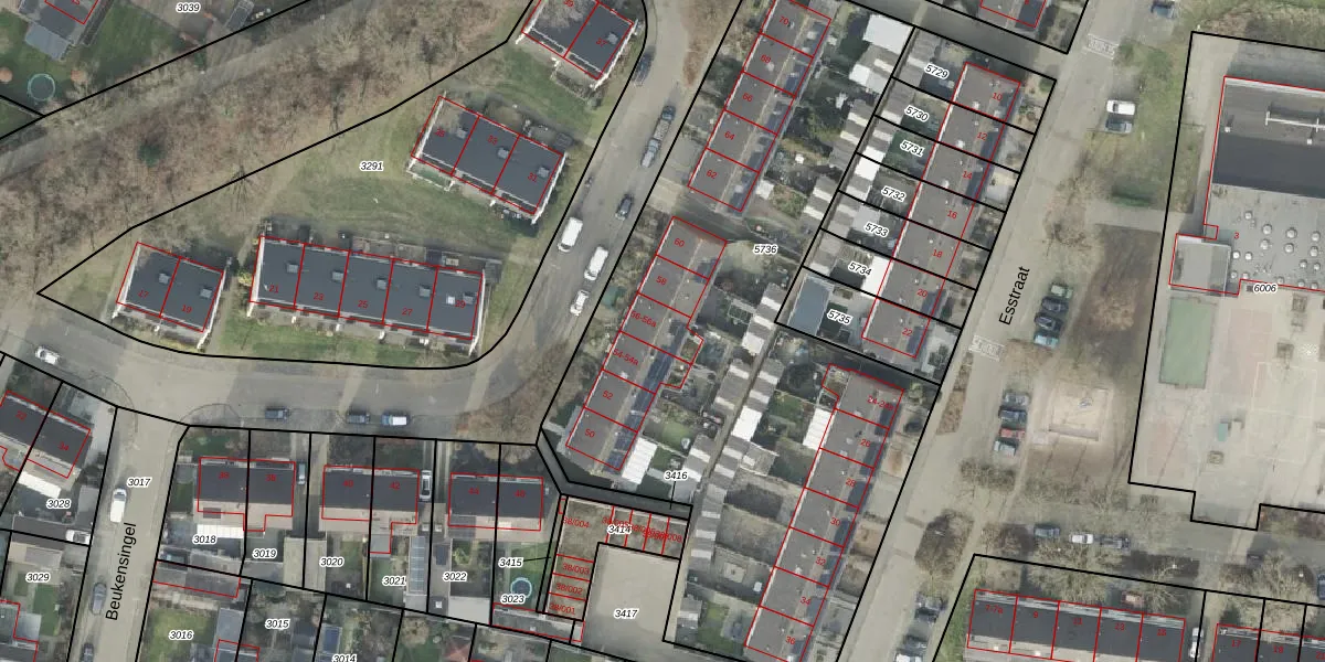 Het perceel waarop Beukensingel 56-a staat heeft een oppervlakte van 3440 m². Dit is een zeer groot perceel. De perceeloppervlakte wordt geregistreerd door het Kadaster. Gedetailleerde informatie over de maten van dit perceel kunt u vinden in het rapport Kadastrale kaart met maatvoering van Beukensingel 56-a.