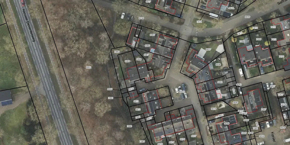 Het adres is gelegen op perceel 6968 in de sectie L en de kadastrale gemeente Raalte. De kadastrale aanduiding is aldus RTE00-L-6968. De gemiddelde perceelgrootte in Raalte is 6668,12 m². Dit perceel is kleiner: de perceeloppervlakte bedraagt 160 m². Het grootste perceel in de kadastrale gemeente is 1,34 km². Het kleinste perceel heeft een oppervlakte van 0 m². Er zijn geen andere adressen aanwezig op het perceel. De laatste wijziging in het de Basisregistratie Kadaster (BRK) was op 05-12-2007.