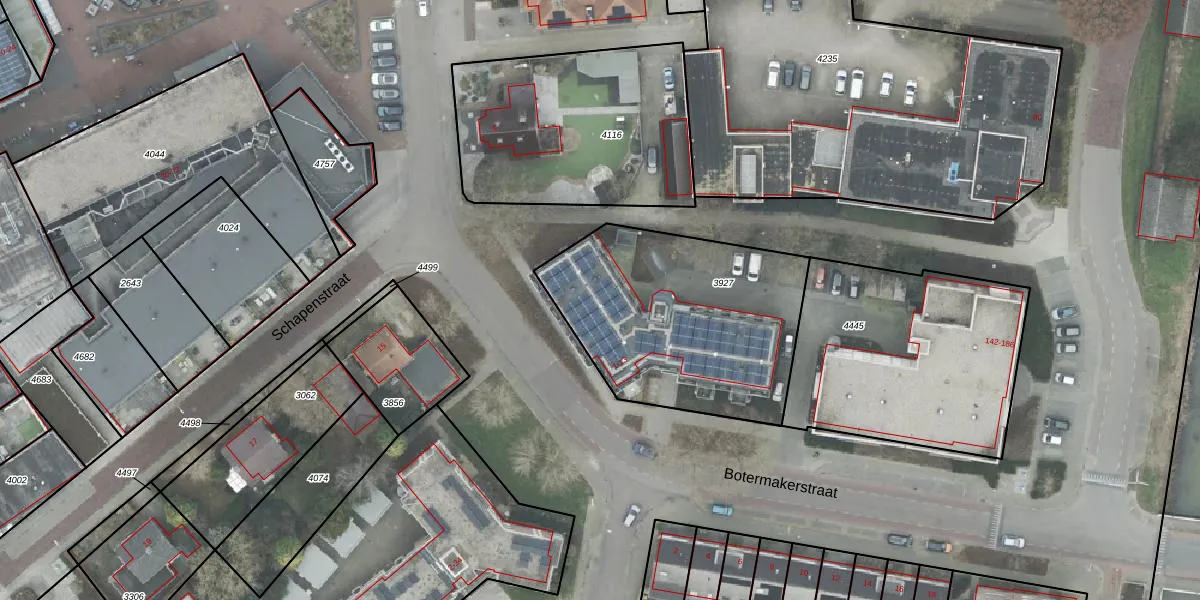 Het perceel waarop Botermakerstraat 11 staat heeft een oppervlakte van 1081 m². Dit is een zeer groot perceel. De perceeloppervlakte wordt geregistreerd door het Kadaster. Gedetailleerde informatie over de maten van dit perceel kunt u vinden in het rapport Kadastrale kaart met maatvoering van Botermakerstraat 11.