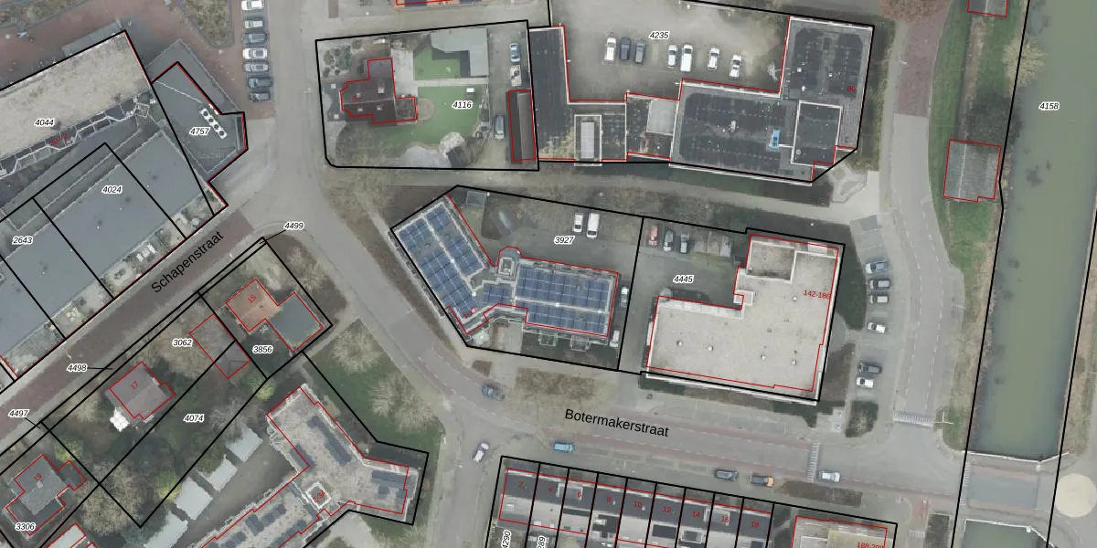 Het perceel waarop Botermakerstraat 25 staat heeft een oppervlakte van 1081 m². Dit is een zeer groot perceel. De perceeloppervlakte wordt geregistreerd door het Kadaster. Gedetailleerde informatie over de maten van dit perceel kunt u vinden in het rapport Kadastrale kaart met maatvoering van Botermakerstraat 25.