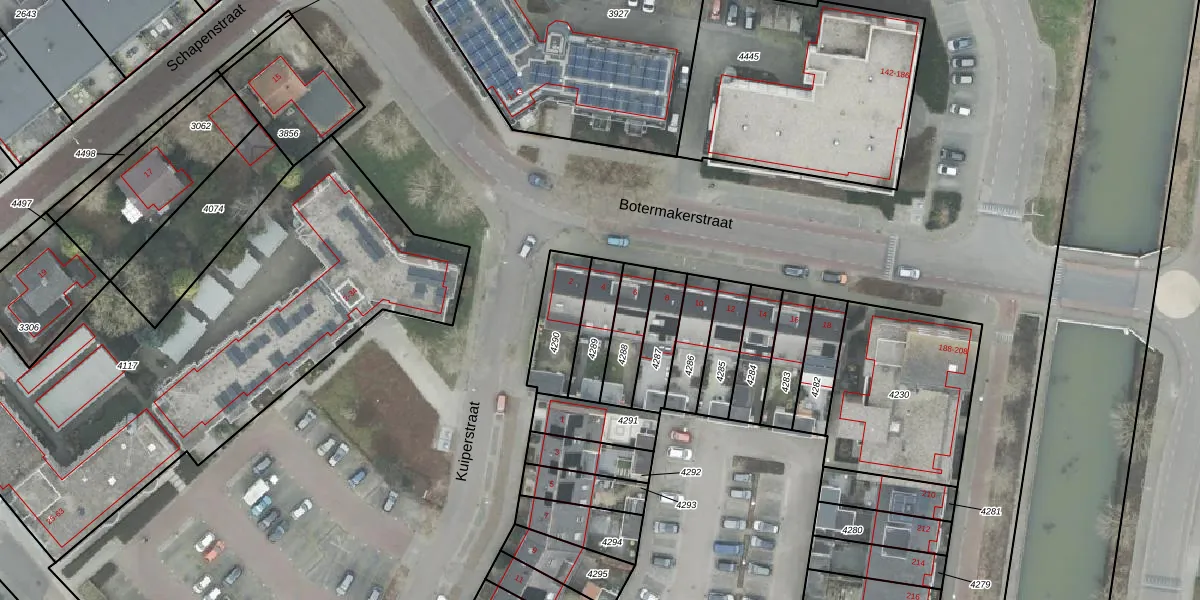 Botermakerstraat 4 is gelegen op kadastraal perceel RTE00E4289. Deze kadastrale aanduiding is uniek en wordt gebruikt door het Kadaster om eigendomsrechten en andere zakelijke rechten vast te leggen. Het perceel maakt onderdeel uit van de kadastrale gemeente Raalte.
