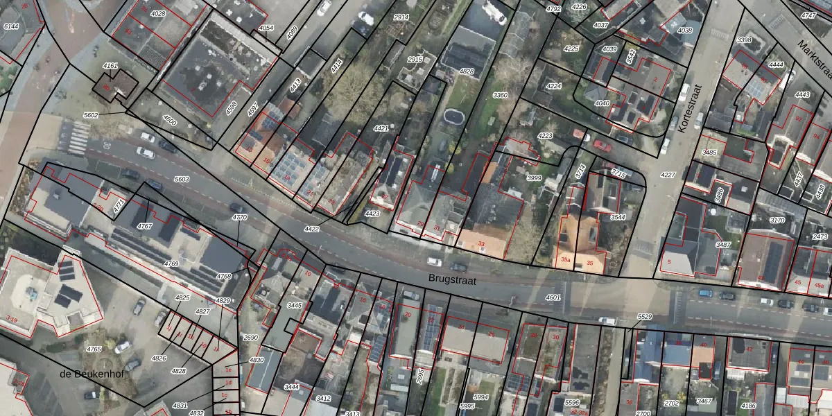 Het perceel waarop Brugstraat 29 staat heeft een oppervlakte van 685 m². Dit is een groot perceel. De perceeloppervlakte wordt geregistreerd door het Kadaster. Gedetailleerde informatie over de maten van dit perceel kunt u vinden in het rapport Kadastrale kaart met maatvoering van Brugstraat 29.
