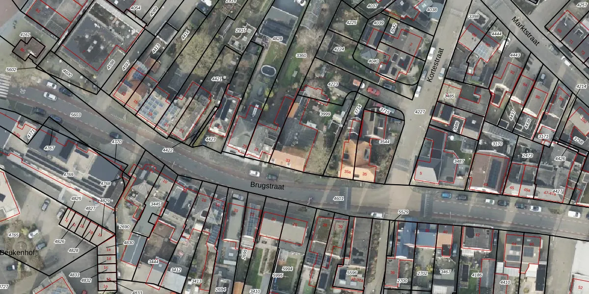 Het perceel waarop Brugstraat 33 staat heeft een oppervlakte van 490 m². Dit is een groot perceel. De perceeloppervlakte wordt geregistreerd door het Kadaster. Gedetailleerde informatie over de maten van dit perceel kunt u vinden in het rapport Kadastrale kaart met maatvoering van Brugstraat 33.