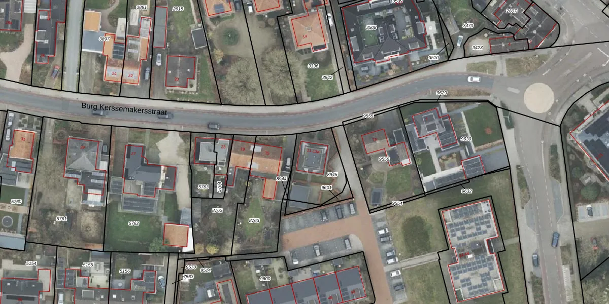 Het perceel waarop Burg Kerssemakersstraat 13 staat heeft een oppervlakte van 369 m². Dit is een groot perceel. De perceeloppervlakte wordt geregistreerd door het Kadaster. Gedetailleerde informatie over de maten van dit perceel kunt u vinden in het rapport Kadastrale kaart met maatvoering van Burg Kerssemakersstraat 13.