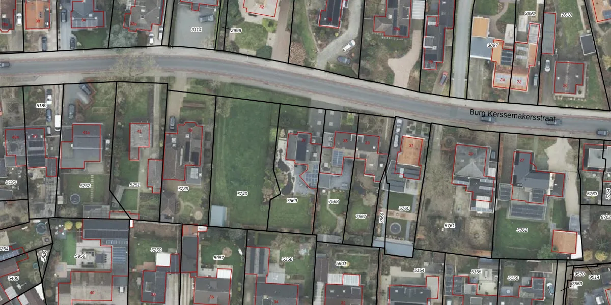 Het perceel waarop Burg Kerssemakersstraat 37 staat heeft een oppervlakte van 608 m². Dit is een groot perceel. De perceeloppervlakte wordt geregistreerd door het Kadaster. Gedetailleerde informatie over de maten van dit perceel kunt u vinden in het rapport Kadastrale kaart met maatvoering van Burg Kerssemakersstraat 37.