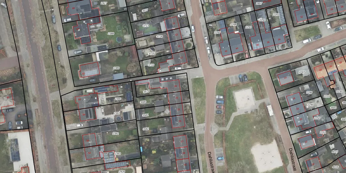 Het perceel waarop Dahliastraat 19 staat heeft een oppervlakte van 299 m². Dit is een middelgroot perceel. De perceeloppervlakte wordt geregistreerd door het Kadaster. Gedetailleerde informatie over de maten van dit perceel kunt u vinden in het rapport Kadastrale kaart met maatvoering van Dahliastraat 19.