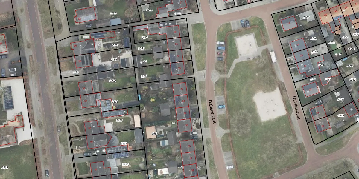 Het perceel waarop Dahliastraat 27 staat heeft een oppervlakte van 2558 m². Dit is een zeer groot perceel. De perceeloppervlakte wordt geregistreerd door het Kadaster. Gedetailleerde informatie over de maten van dit perceel kunt u vinden in het rapport Kadastrale kaart met maatvoering van Dahliastraat 27.