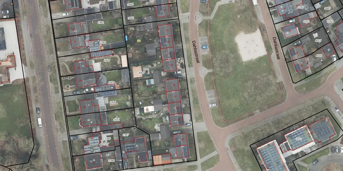 Het perceel waarop Dahliastraat 35 staat heeft een oppervlakte van 2558 m². Dit is een zeer groot perceel. De perceeloppervlakte wordt geregistreerd door het Kadaster. Gedetailleerde informatie over de maten van dit perceel kunt u vinden in het rapport Kadastrale kaart met maatvoering van Dahliastraat 35.
