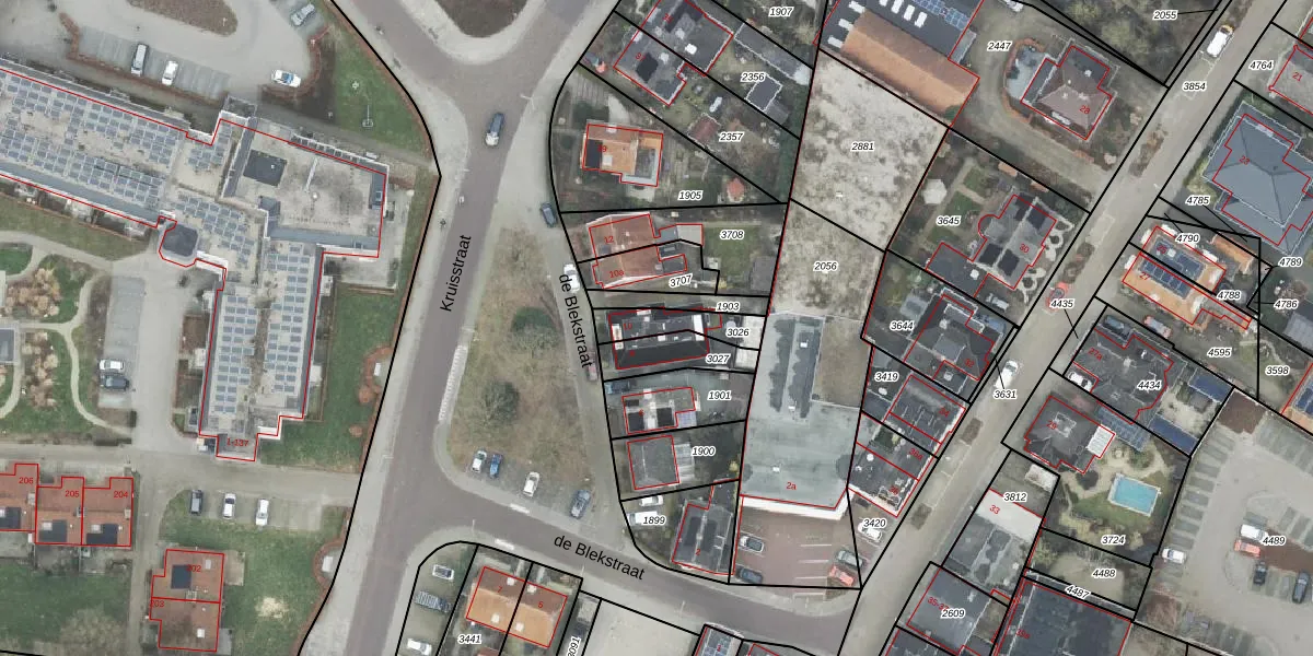 Gebruik de zoekbalk of klik op een perceel voor informatie over de adressen binnen dit perceel.
