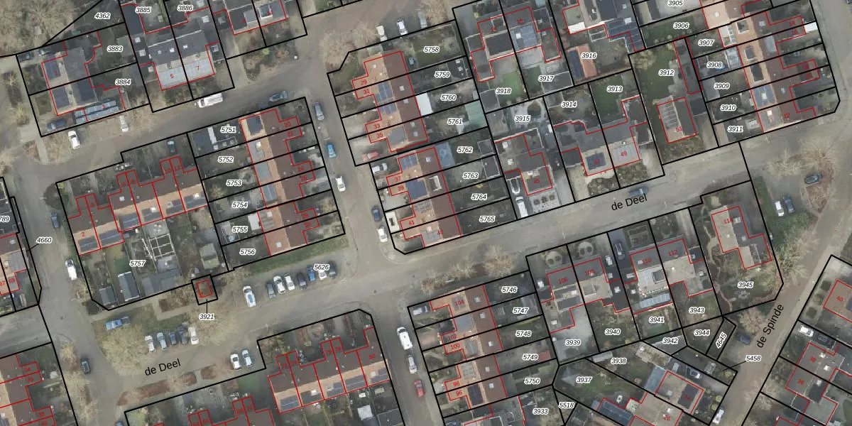 Gebruik de zoekbalk of klik op een perceel voor informatie over de adressen binnen dit perceel.
