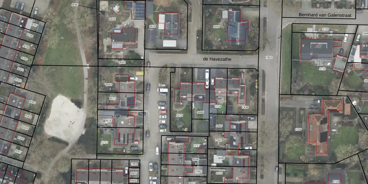 Het perceel waarop de Havezathe 8 staat heeft een oppervlakte van 406 m². Dit is een groot perceel. De perceeloppervlakte wordt geregistreerd door het Kadaster. Gedetailleerde informatie over de maten van dit perceel kunt u vinden in het rapport Kadastrale kaart met maatvoering van de Havezathe 8.