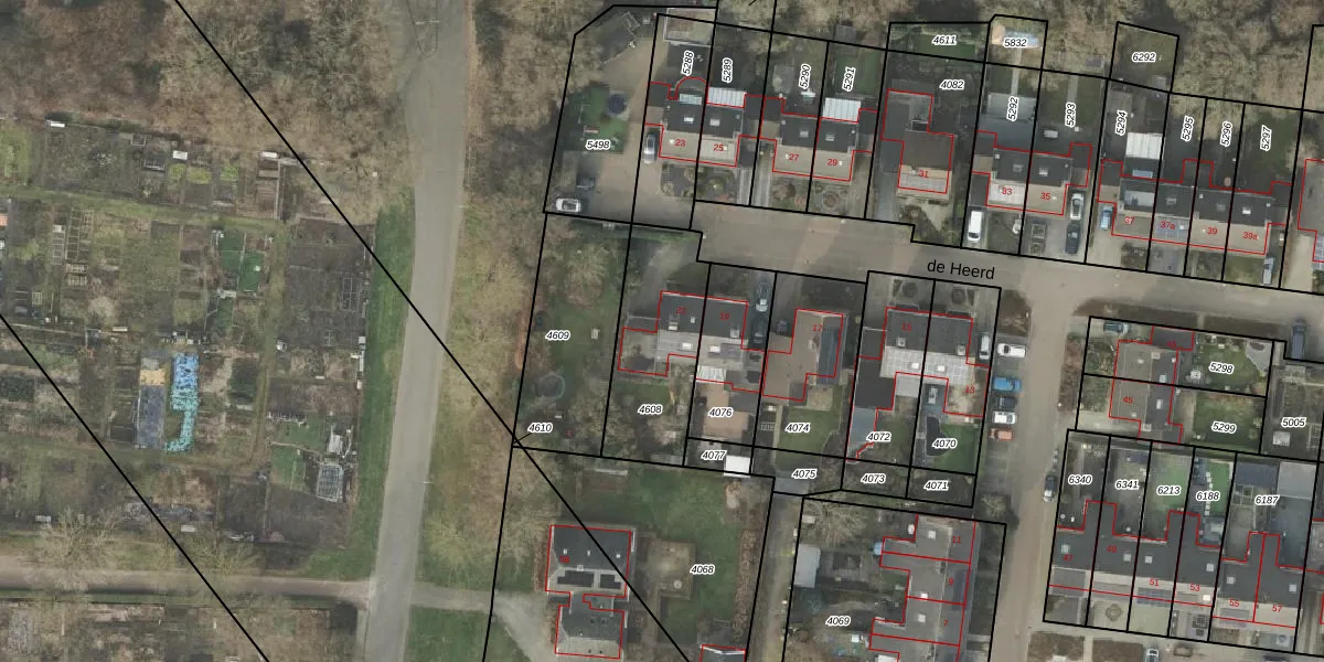 Het perceel waarop de Heerd 21 staat heeft een oppervlakte van 437 m². Dit is een groot perceel. De perceeloppervlakte wordt geregistreerd door het Kadaster. Gedetailleerde informatie over de maten van dit perceel kunt u vinden in het rapport Kadastrale kaart met maatvoering van de Heerd 21.