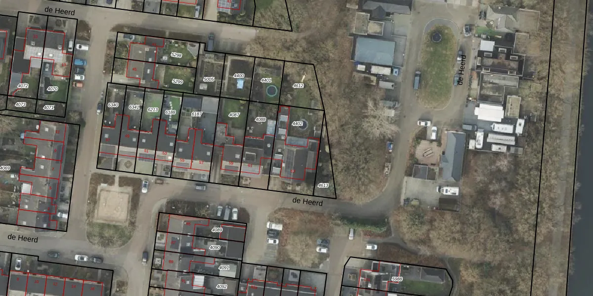 Het perceel waarop de Heerd 63 staat heeft een oppervlakte van 450 m². Dit is een groot perceel. De perceeloppervlakte wordt geregistreerd door het Kadaster. Gedetailleerde informatie over de maten van dit perceel kunt u vinden in het rapport Kadastrale kaart met maatvoering van de Heerd 63.