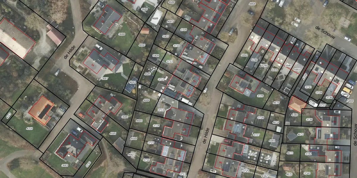 Het perceel waarop de Hilde 64 staat heeft een oppervlakte van 319 m². Dit is een groot perceel. De perceeloppervlakte wordt geregistreerd door het Kadaster. Gedetailleerde informatie over de maten van dit perceel kunt u vinden in het rapport Kadastrale kaart met maatvoering van de Hilde 64.