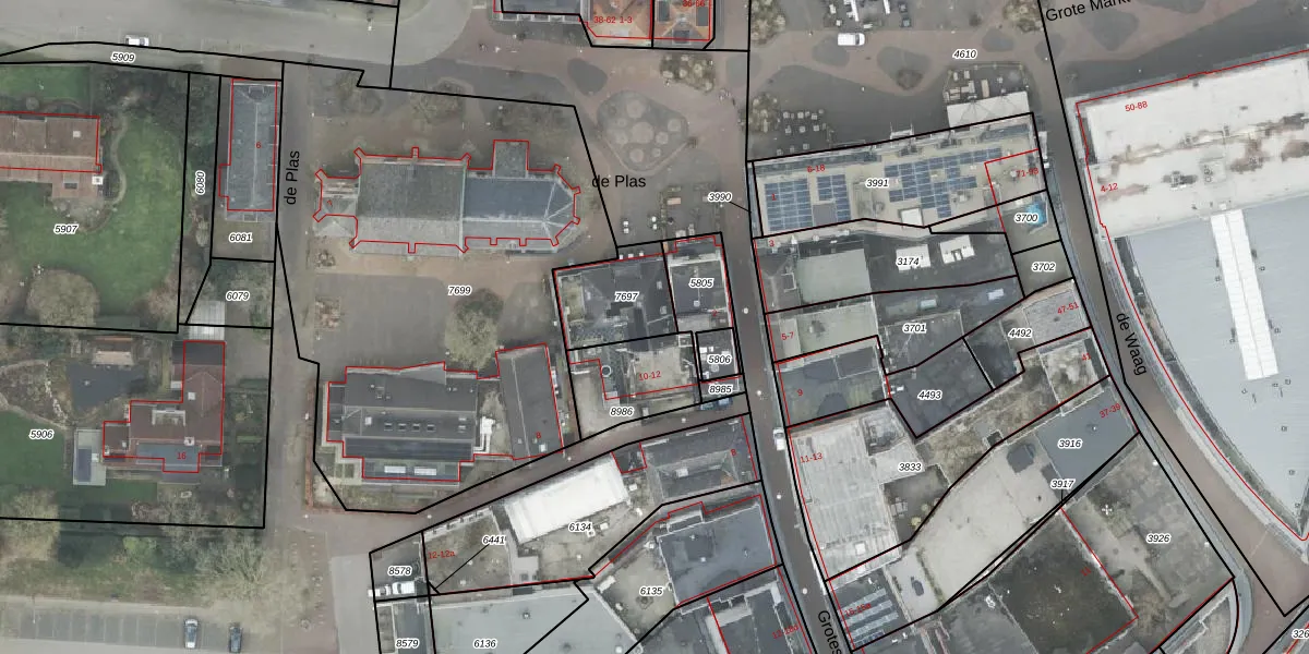 de Plas 12 is gelegen op kadastraal perceel RTE00L7697. Deze kadastrale aanduiding is uniek en wordt gebruikt door het Kadaster om eigendomsrechten en andere zakelijke rechten vast te leggen. Het perceel maakt onderdeel uit van de kadastrale gemeente Raalte.
