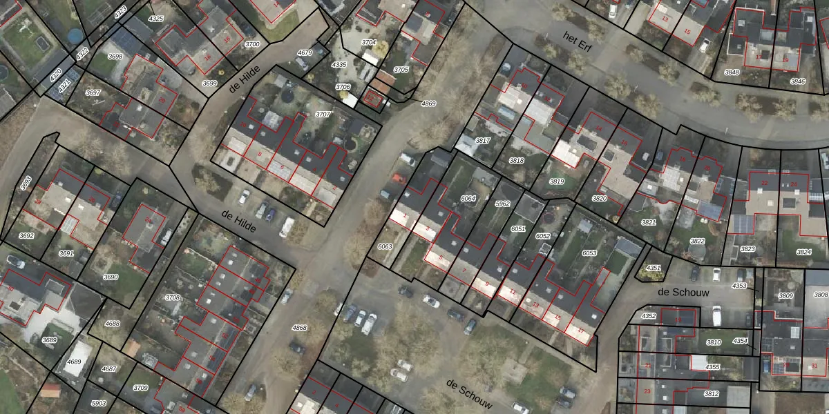 Gebruik de zoekbalk of klik op een perceel voor informatie over de adressen binnen dit perceel.